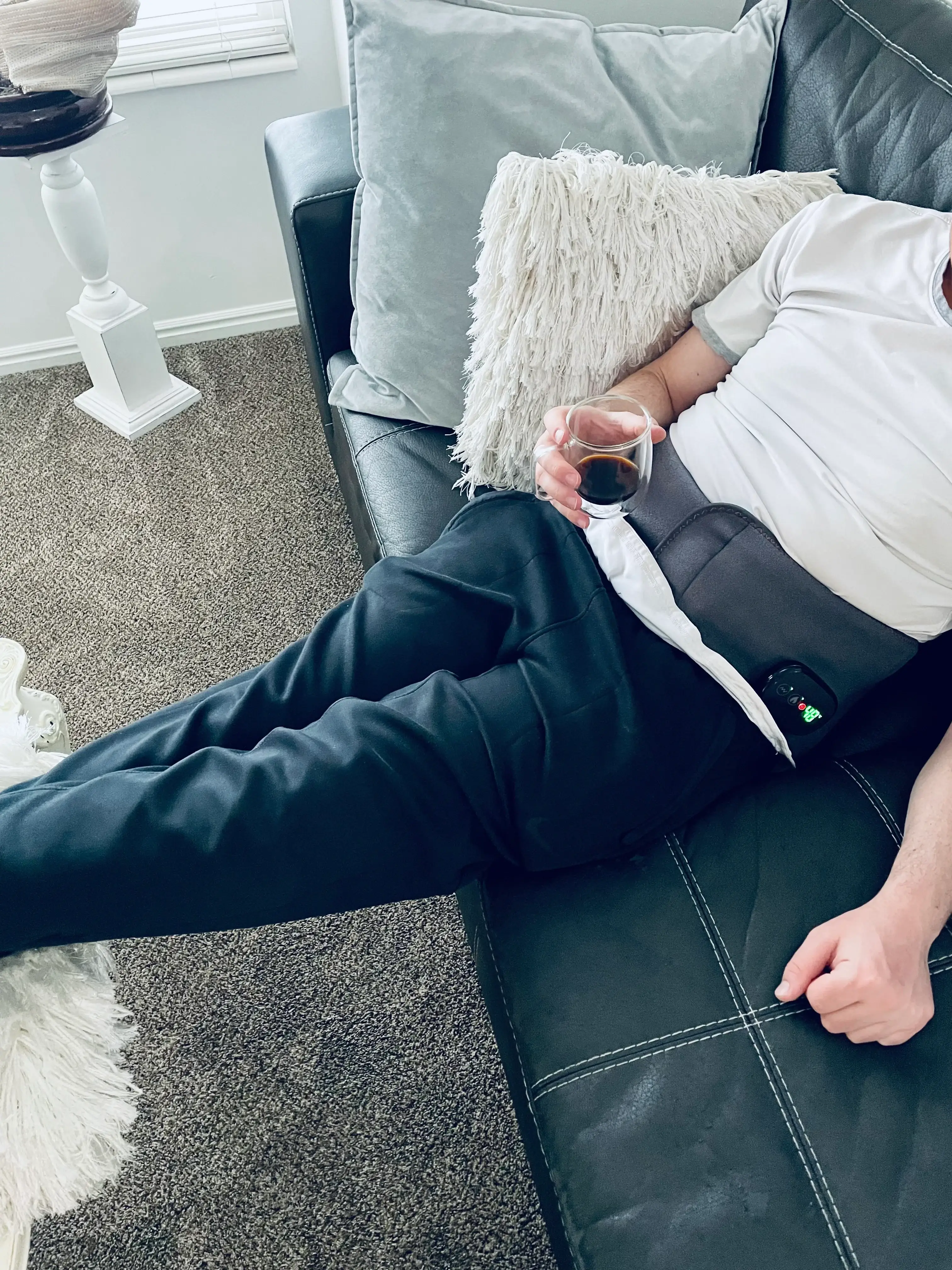 "The belt is so easy to use and versatile that I have it on even when I don't need it. Easy to charge the battery pack with USB and then fully customize the temperature and massage. The fabric is soft and the lining is neoprene. It holds its charge well and I can place it exactly where I need it."