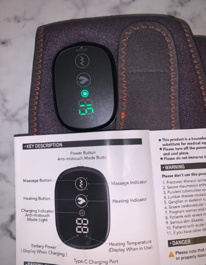"Feels good on the back, the size is adjustable and works for both me and my husband. Supportive and portable, can wear while working around the house. Takes time to heat up but feels nice. Can wear with high heat and massage for about two hours before needing to charge. Took about 3 hours to fully charge again. The support part is removable and supportive. We like it and would definitely buy it again. Perfect for back pain and cramps!"