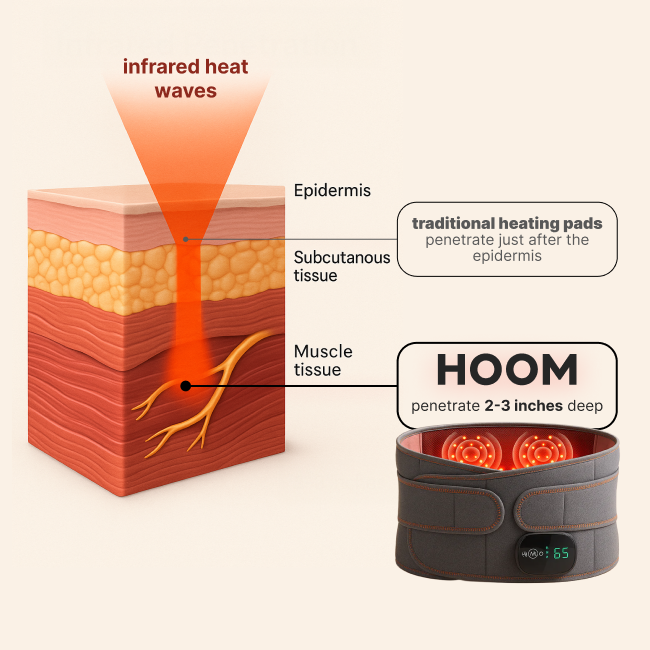 The Hoom Infrared Belt combines 3 proven pain relief methods to relieve back and sciatica pain from the comfort of your home.